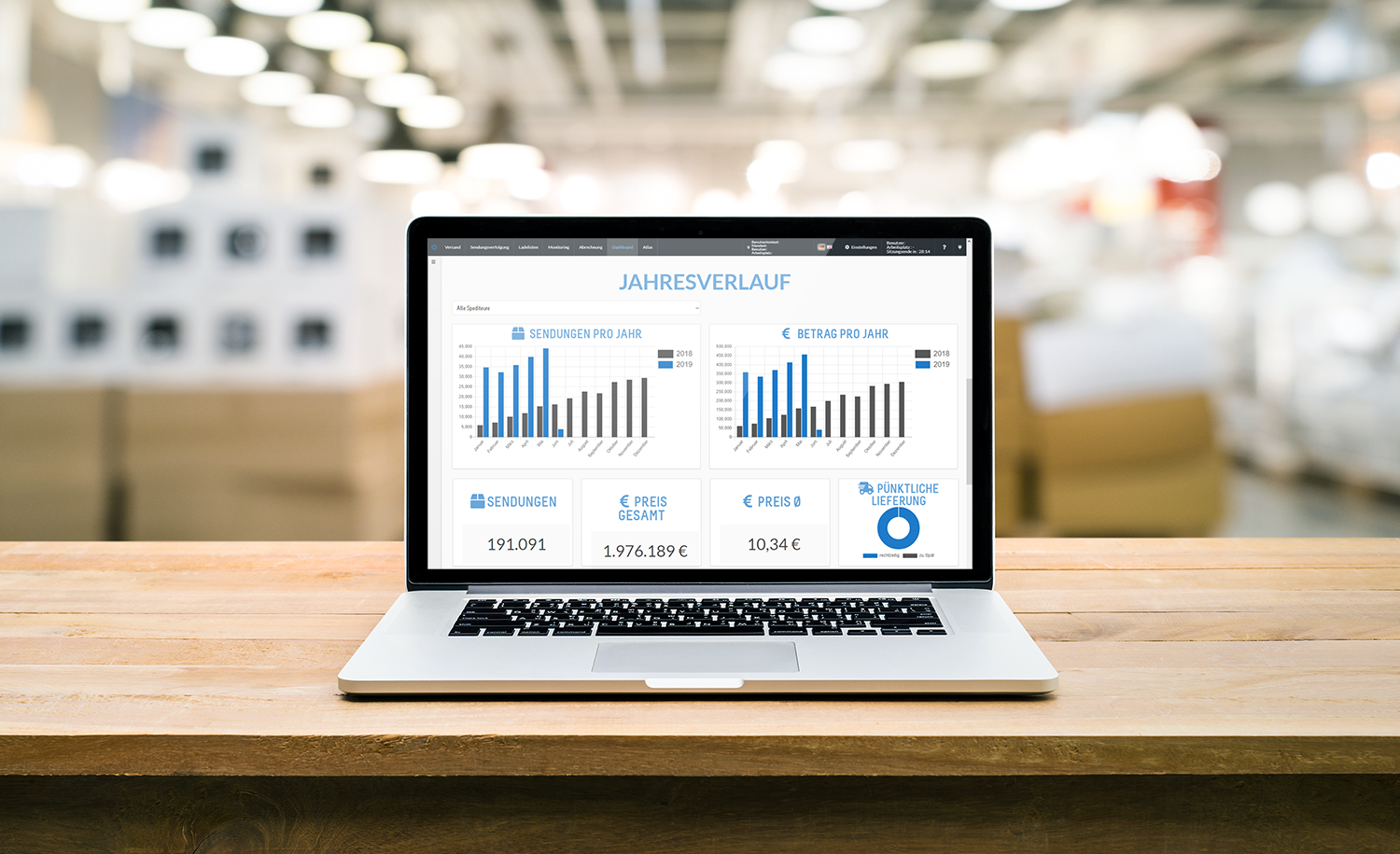 Freely configurable reporting functions for, among others, carrier monitoring and evaluation as well as runtime analysis, shipment structure, cost structure, and forecast.